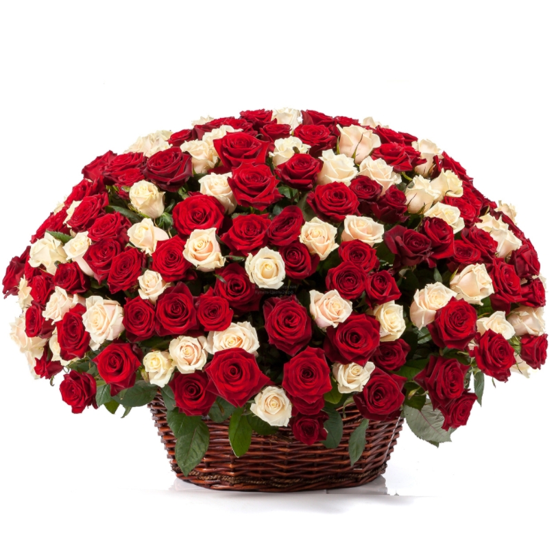 Корзина из 201 красной и белой розы